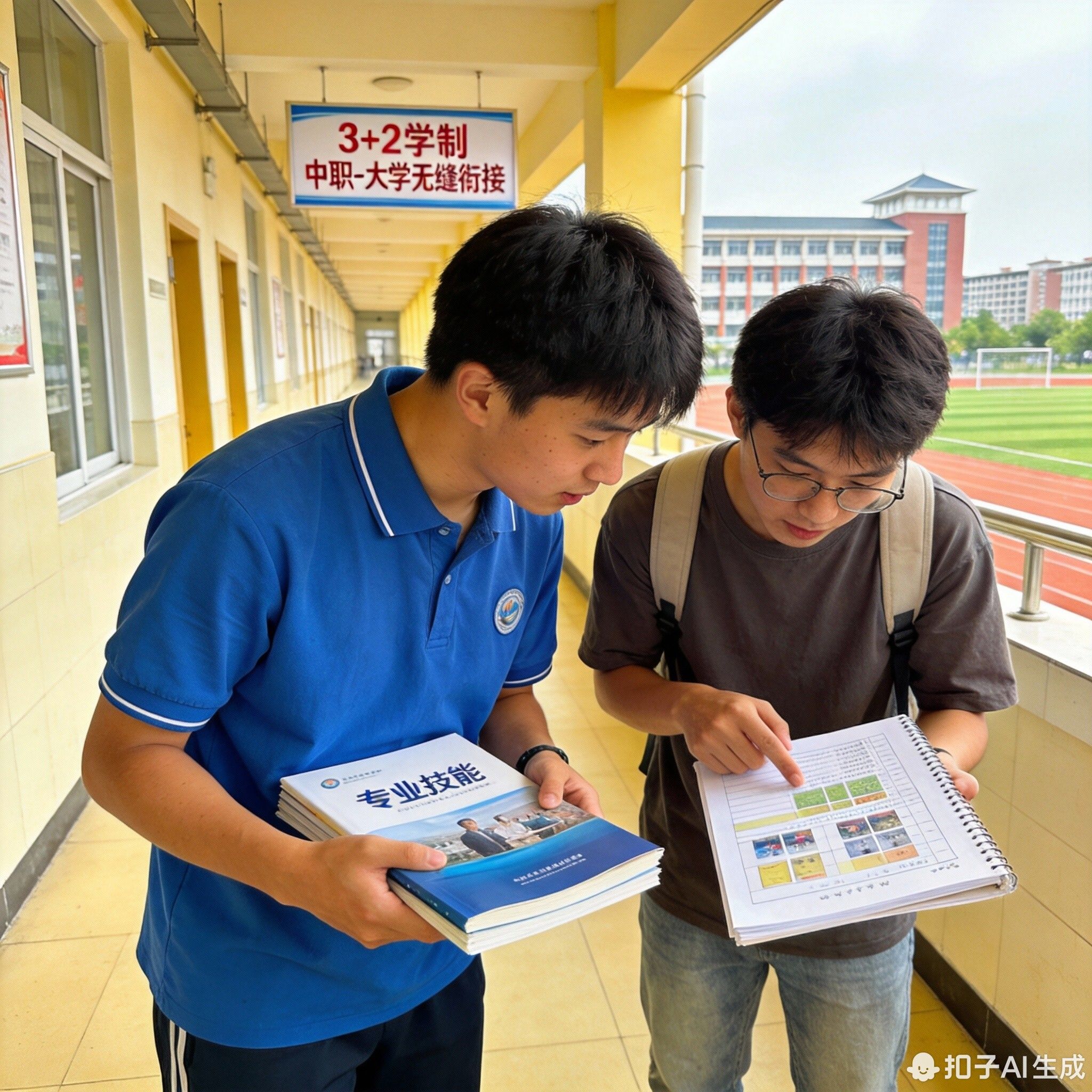 中职学生与大学生在校园交流,展现3+2学制从中职到大学的无缝衔接