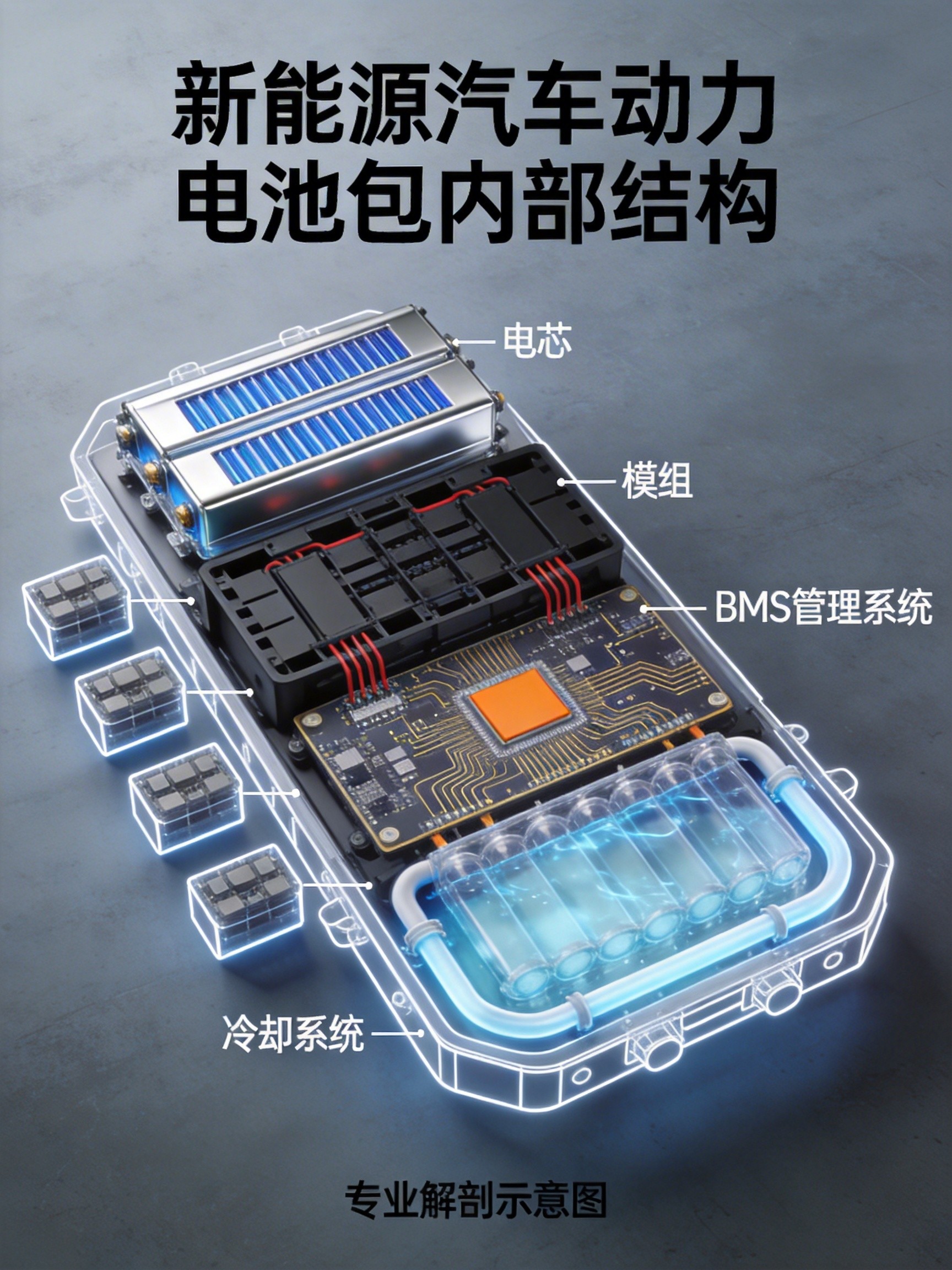 电池管理系统(BMS) :电池包的"大脑",实时监控电芯温度、电压、电流,防止过充过放,确保电池安全