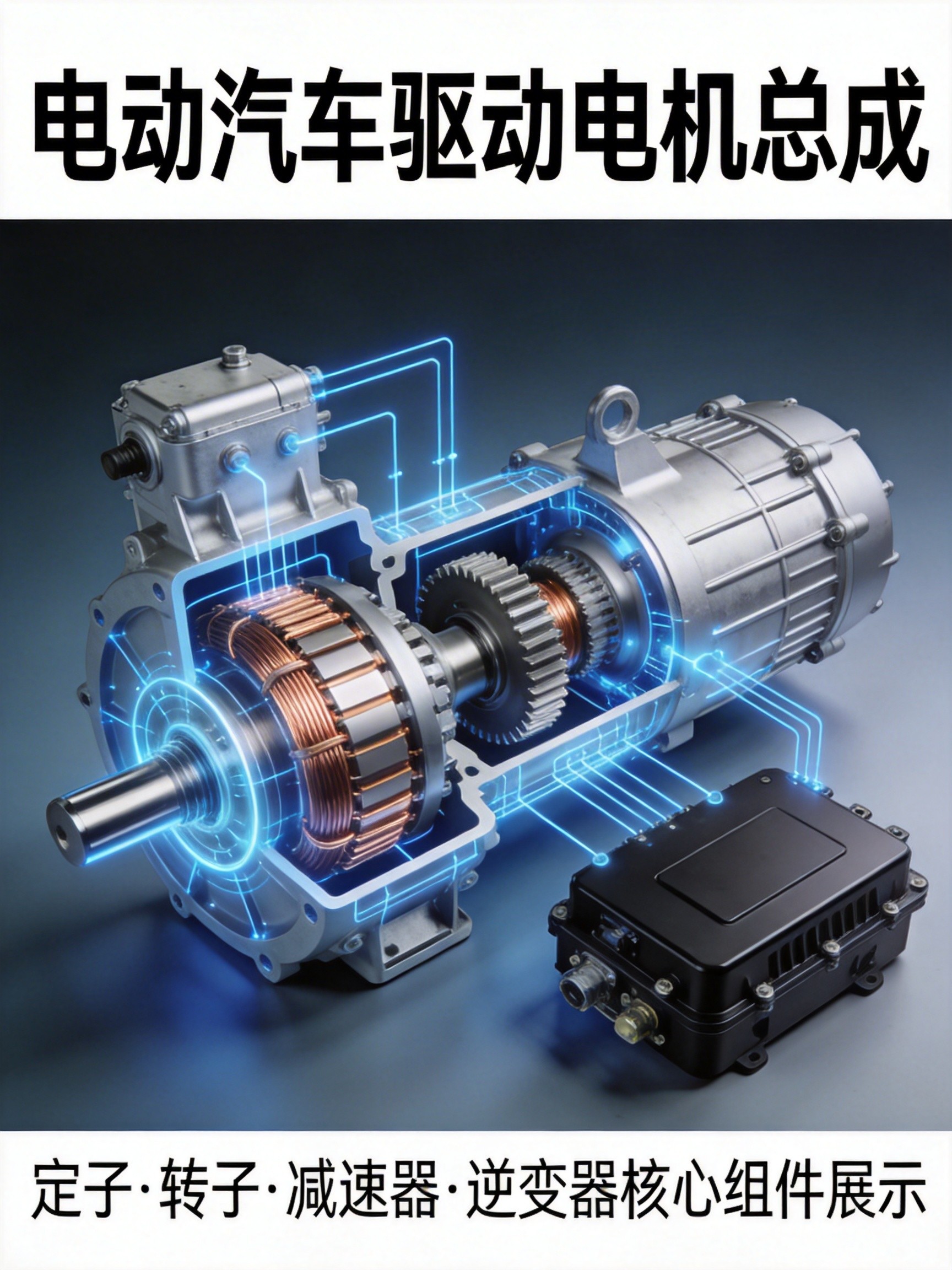 逆变器:将电池的直流电转换为电机所需的交流电,控制电机的转速和扭矩输出
